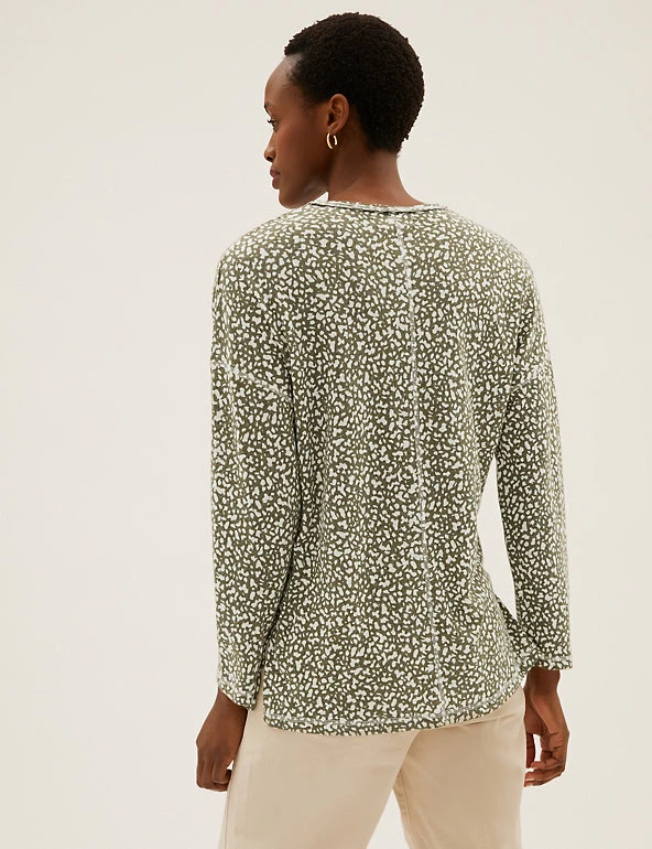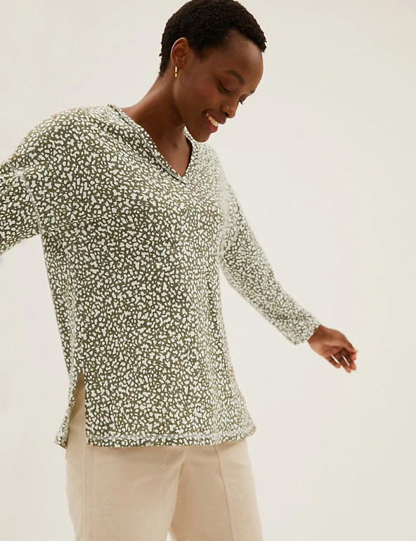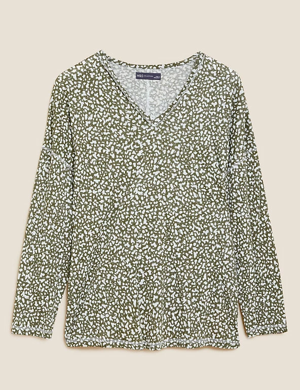 Add to your everyday essentials with this printed linen-rich top. It’s cut to an effortless regular fit, with a flattering v-neck and long sleeves. Stitch detailing adds extra interest.