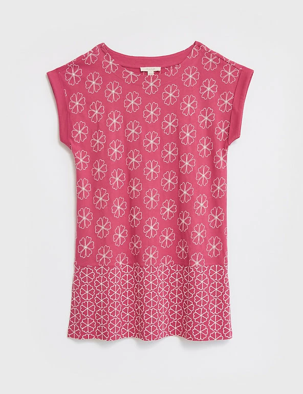 Channel boho chic in this stylish pure-cotton tunic by White Stuff. This elegant piece is designed in a regular fit and sports eye-catching floral embroidery. It features a flattering slash neck and is finished with contemporary turn-back cuffs on the short sleeves.