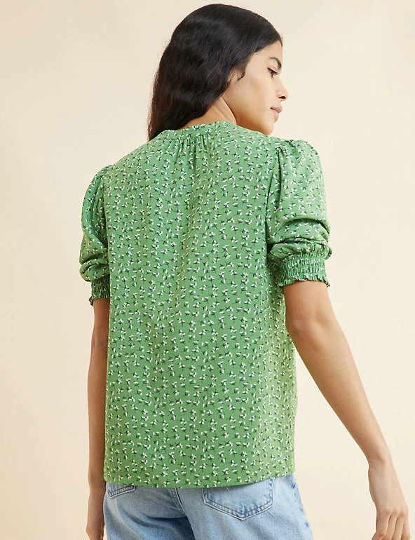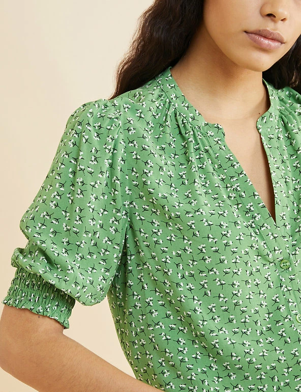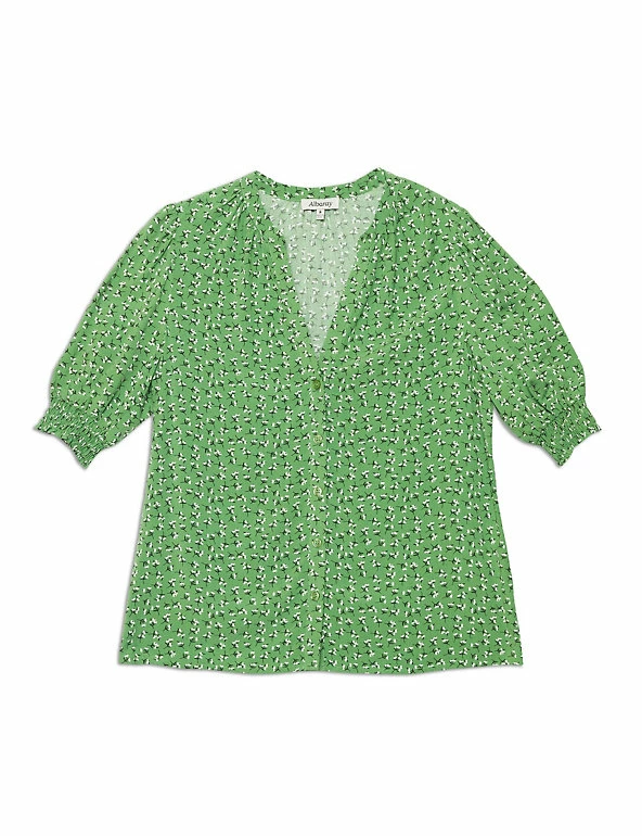 Add a dainty feel to your outfit with this pretty floral blouse by Albaray. It’s cut to a comfy regular fit, with an elegant v-neckline and button-through front. Shirred cuffs create subtle volume through the 3/4-length sleeves.