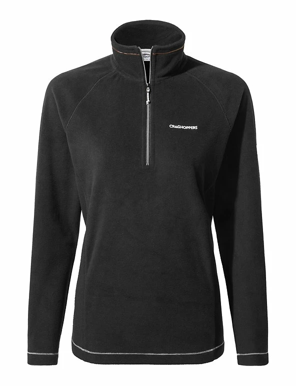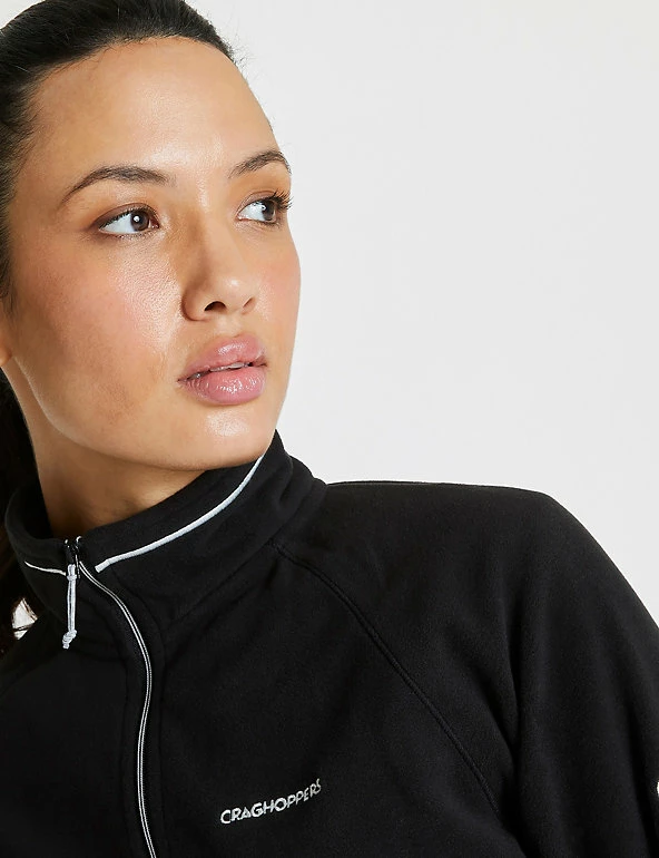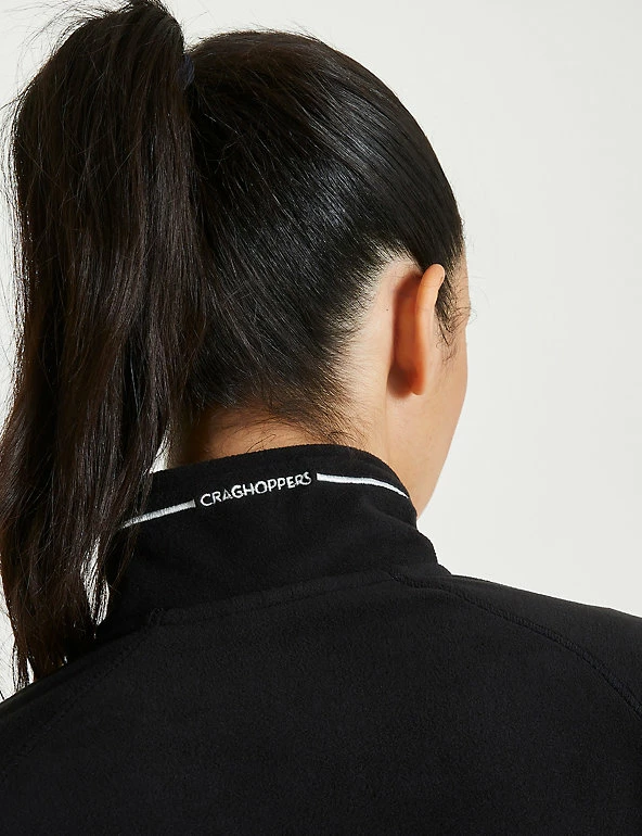 Layer up in style on outdoor adventures in this fleece top from Craghoppers. Its relaxed fit gives plenty of room for underlayers, and the half zip fastening lets you adjust your warmth levels. A contrast trim at the cosy funnel neckline, and a branded badge on the chest, add neat finishing details. Made with recycled polyester.