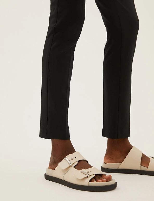These jersey trousers are so cosy that every wardrobe needs two pairs. Slim fit with added stretch for comfort. The high waist features belt loops. Practical side pockets at seams and a mock back pocket for a neat look. Ankle-grazing length for a contemporary finish.