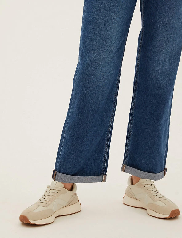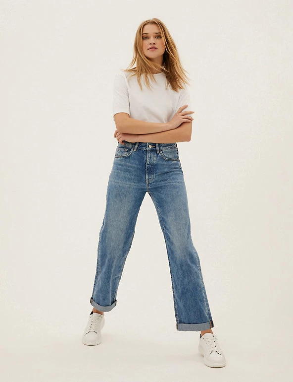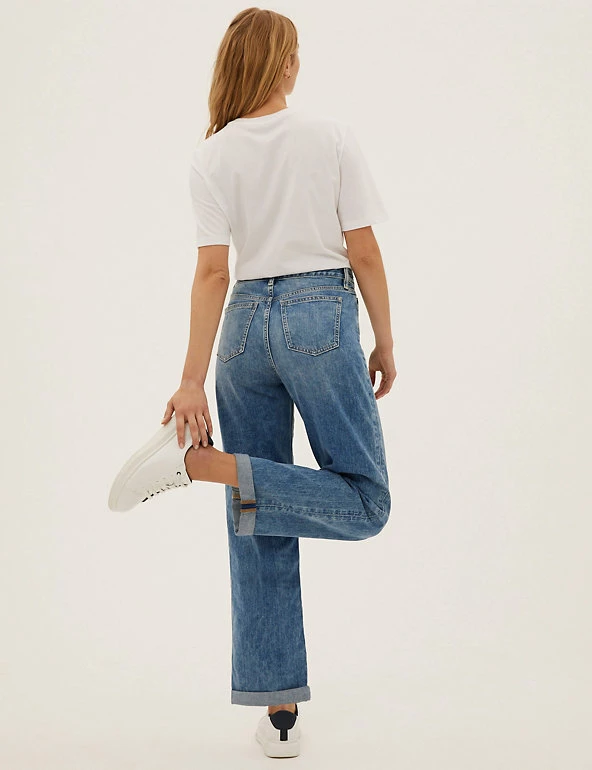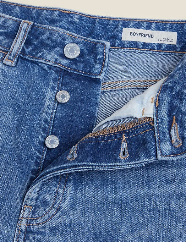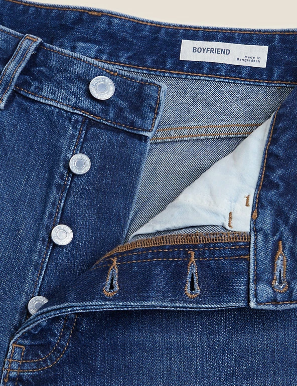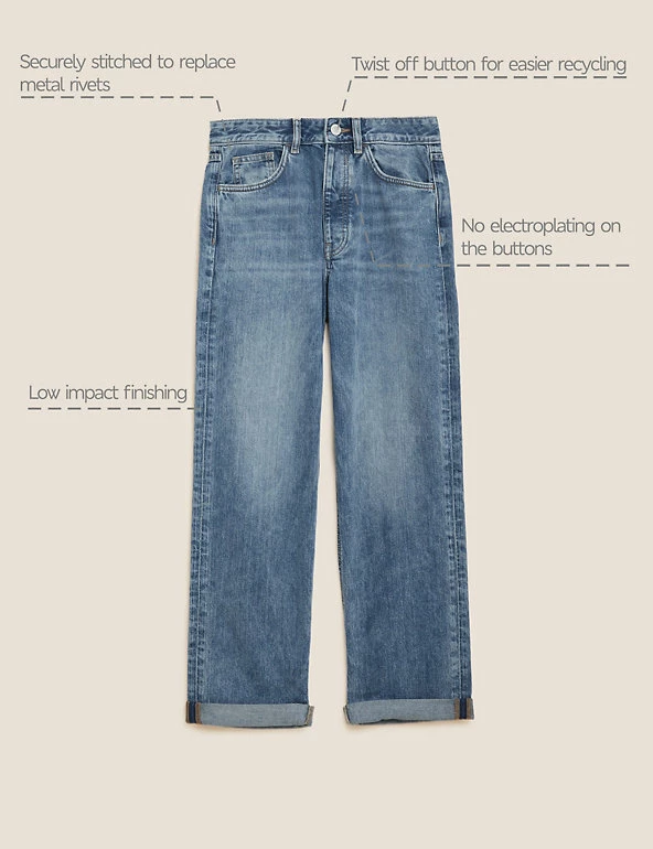 Casual days call for comfy jeans. We’ve cut these in a mid-rise boyfriend fit with a button fastening at the waist. Ankle-grazer rolled hems for a laid-back look. All M&S denim is made with sustainably sourced cotton and less water. Dyeing with pre-reduced indigo reduces water and chemical use in production. Made from an organic and recycled cotton blend.