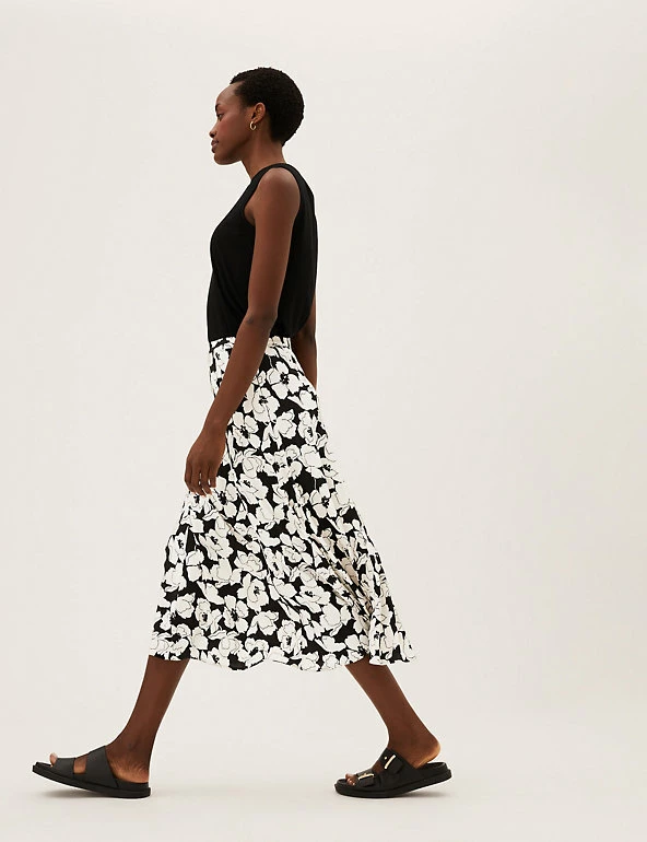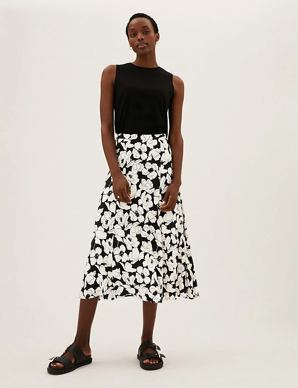 With its bold floral print, this skirt will create an eye-catching look. The A-line design falls to a midi length for a flattering silhouette and is finished with a discreet zip fastening at the side.