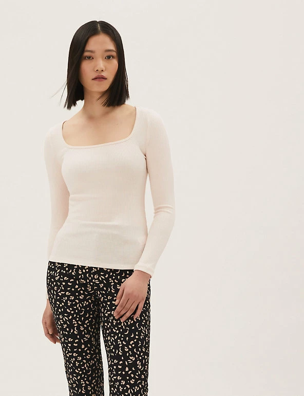This long sleeve top is crafted from stretchy jersey for a cosy feel. Regular fit, with long sleeves and a square neck for a flattering finish.
