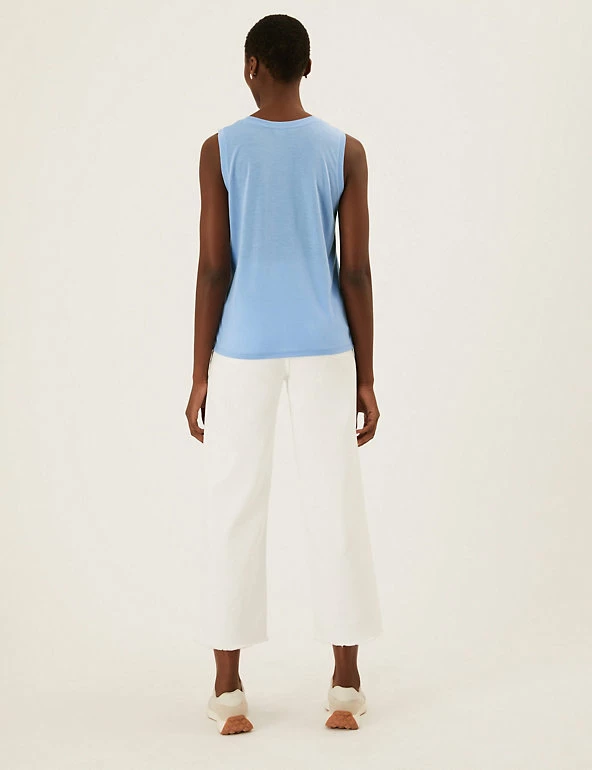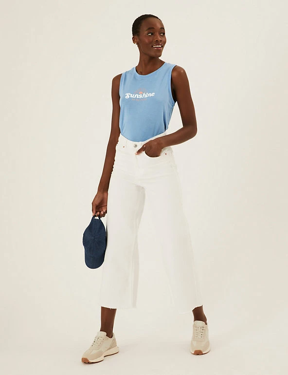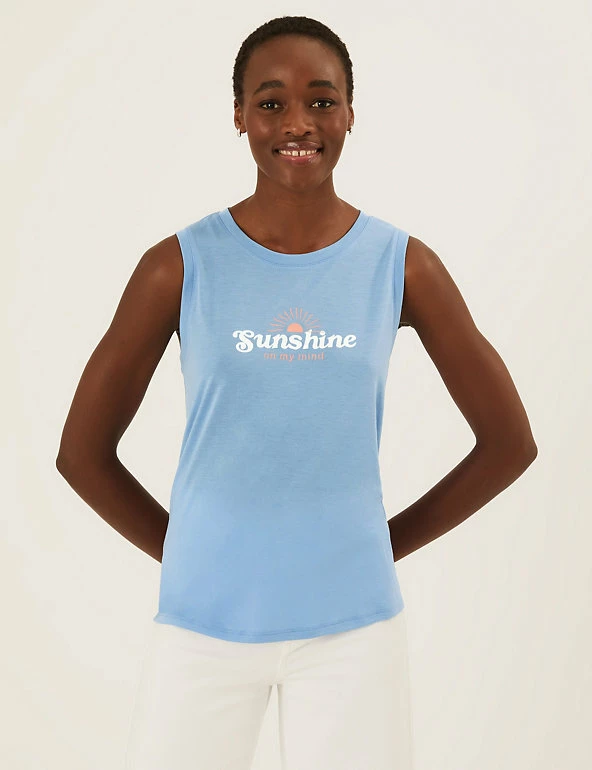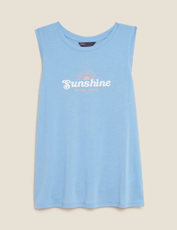 Bring positive vibes to your day with this graphic vest top. Comfy relaxed fit, with a simple crew neckline. Made with recycled polyester.