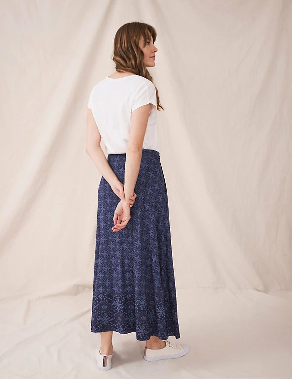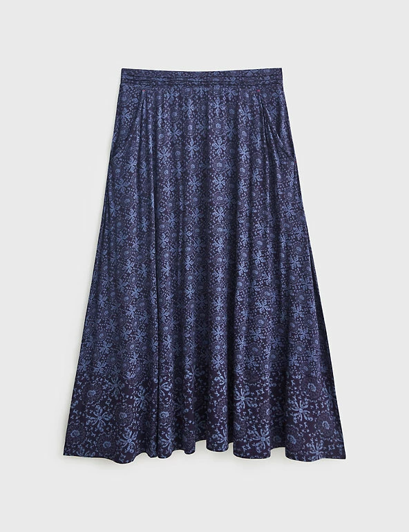An abstract print lends an eye-catching look to this pretty skirt from White Stuff. This classic tiered design flows to an elegant midaxi length, sitting just above the ankle. It has a comfy elasticated waistband and is finished with side pockets for a practical touch. Made with sustainably sourced viscose.
