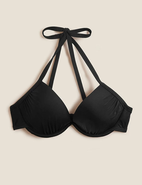 When the seaside calls, turn to this v-neck bikini top. It’s cut in a regular fit, with smart StayNewβ’ chlorine-resistant fabric to keep it looking newer for longer. Underwired, moulded cups keep you supported. Full lining and added stretch for comfort. Tie fastening for the perfect fit. M&S Collection: versatile styles in modern shapes with unique and playful details.