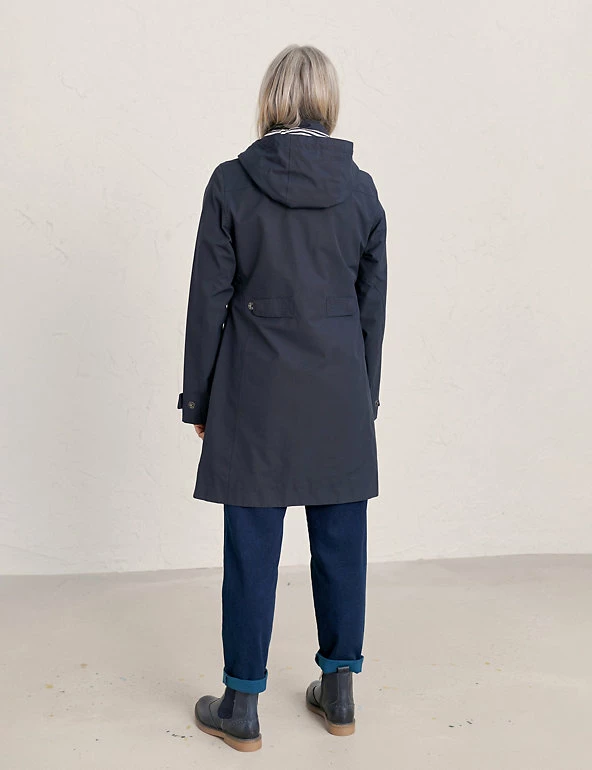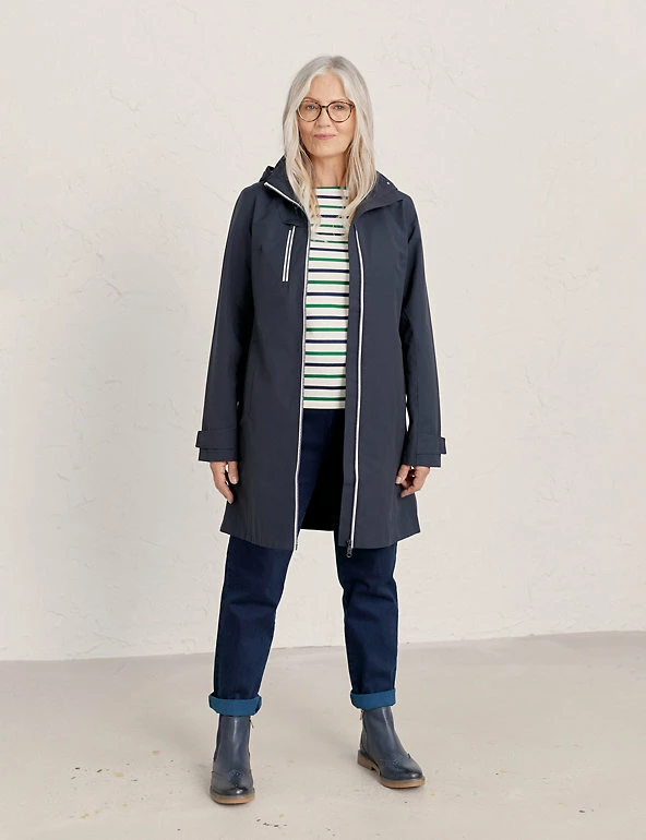 Crafted from an organic cotton blend, this Seasalt Cornwall raincoat is a staple trans-seasonal piece. It’s cut to a regular fit, with tab detail on the cuffs and the back so you can adjust it as needed. You’ll stay dry in rain, thanks to the adjustable hood and waterproof finish. Contrasting zips on the fastening and chest pocket add a subtle, stylish finish. Made with organic cotton.