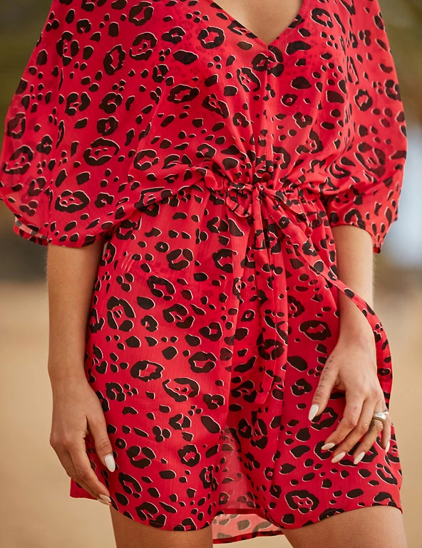 Add a glamorous touch to your beachwear with this classic kaftan from Sosandar. The knee-length design is cut to an easy regular fit and features flattering three-quarter length sleeves. There’s a tie fastening at the waist so you can create the perfect shape. An animal print gives a sophisticated look.