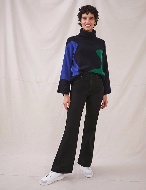 For a modern take on vintage style, look to these flared jeans from White Stuff. The classic, five-pocket design has a regular fit and a flattering mid-rise waist. Made with recycled polyester.