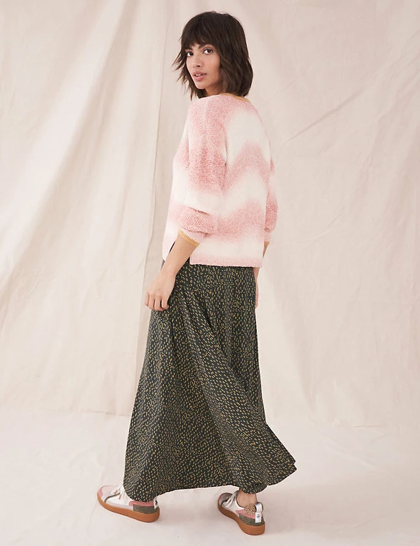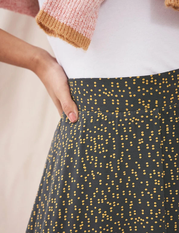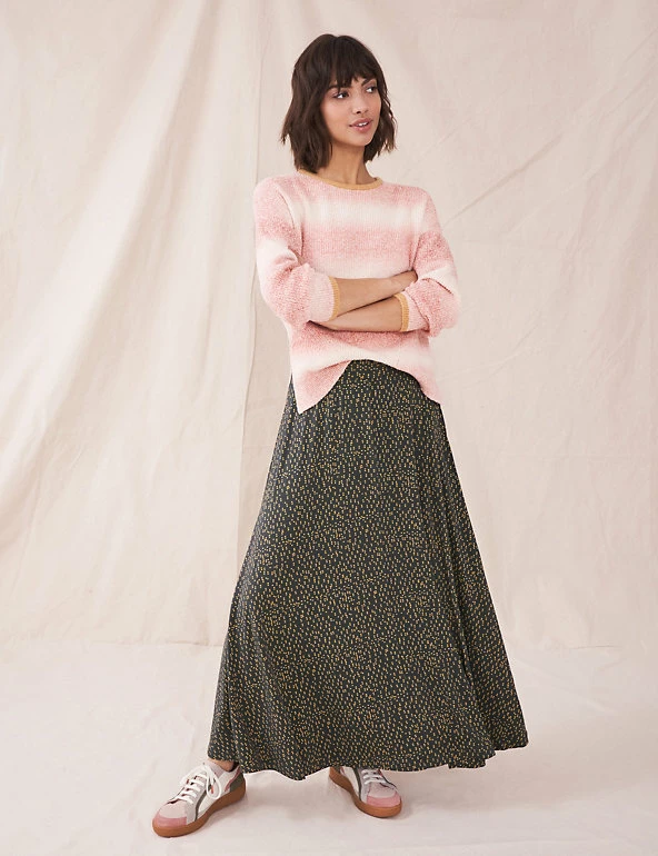 Soft jersey and a swishy silhouette come together to create this effortless White Stuff skirt. This maxi style has an elasticated waist for all-day comfort. It’s complete with an all-over spot print to add extra character to your looks. Made with sustainably sourced viscose.