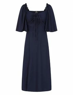 Outlet ⭐ Little Mistress X Vogue Williams 👗 Dresses Square Neck Angel Sleeve Midaxi Tea 👗 Dress ✔️