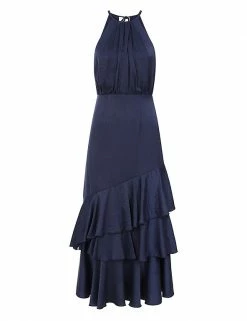 Outlet 🧨 Little Mistress X Vogue Williams 👗 Dresses Satin Halterneck Midaxi Tiered 👗 Dress 👍