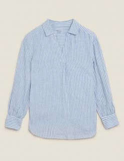 Outlet ๐ M&S Collection ๐ Shirts & Blouses Pure Linen Striped Long Sleeve Blouse ๐